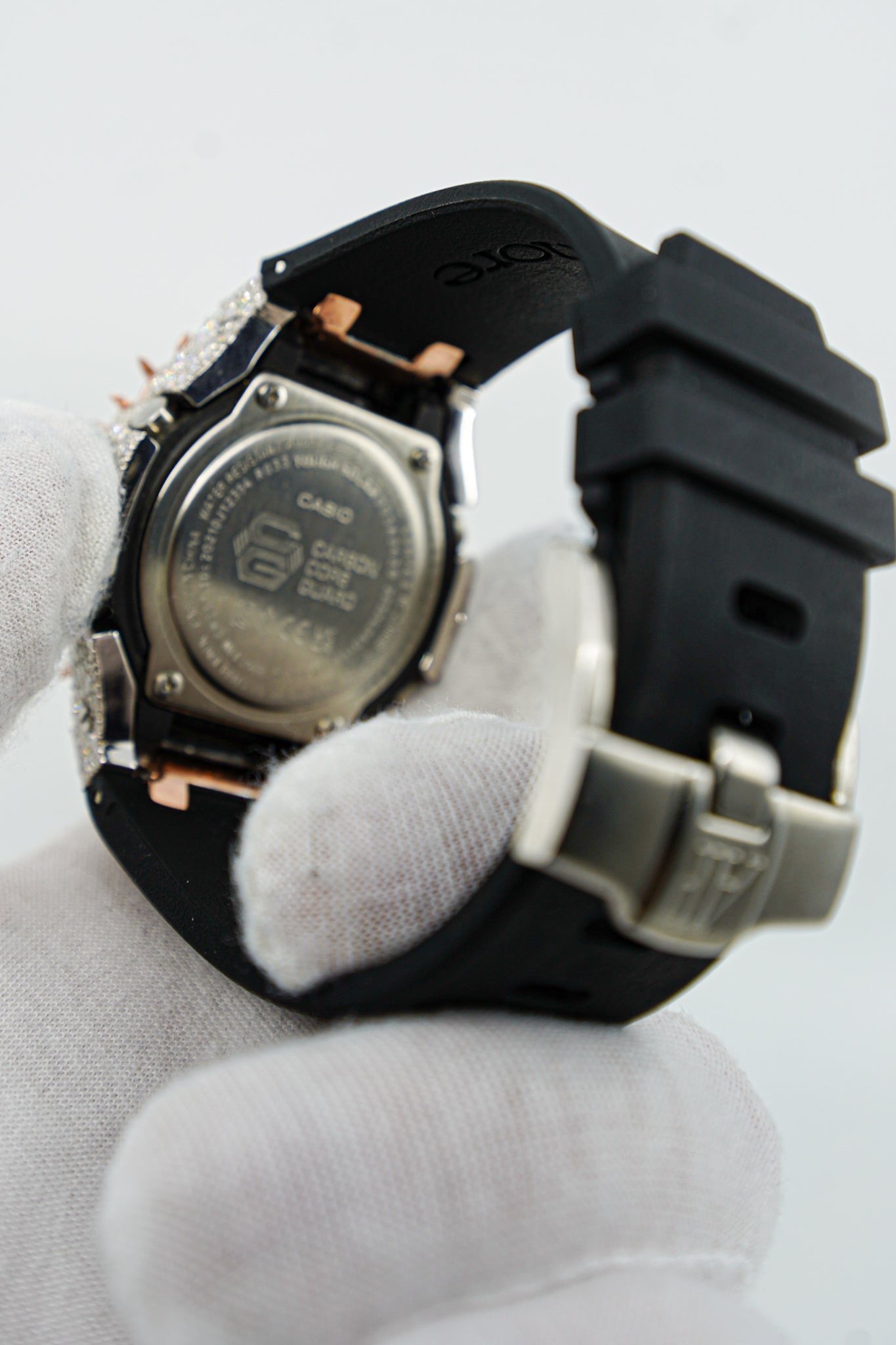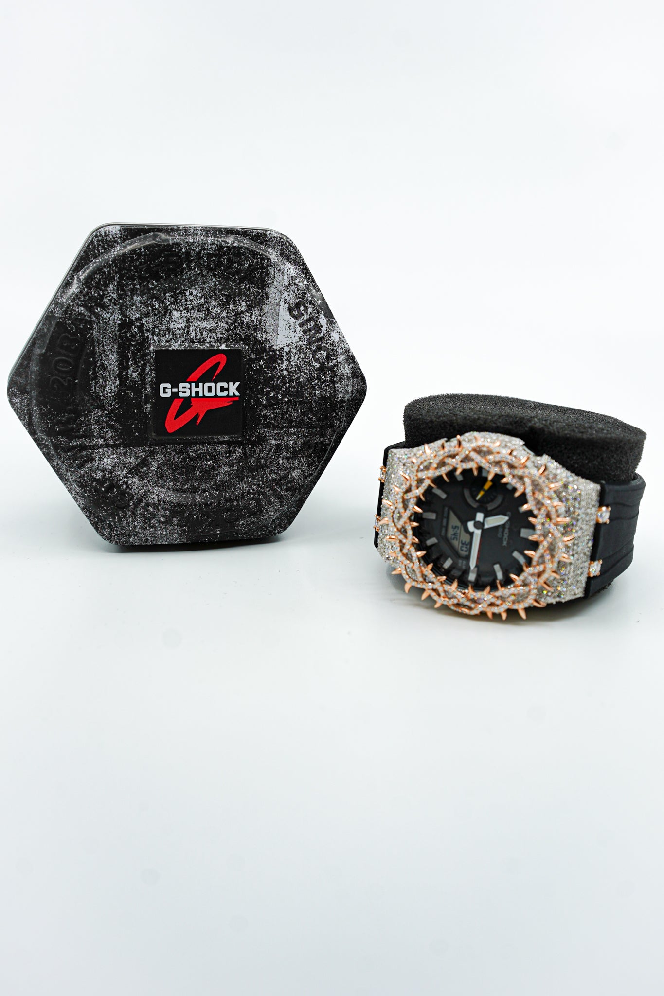 Presenting an exclusive, fully custom G-Shock timepiece, crafted with precision and featuring VVS1 Moissanite stones. This one-of-a-kind creation is diamond tester certified, ensuring the highest quality and authenticity. A true statement piece, unmatched by any other in the market