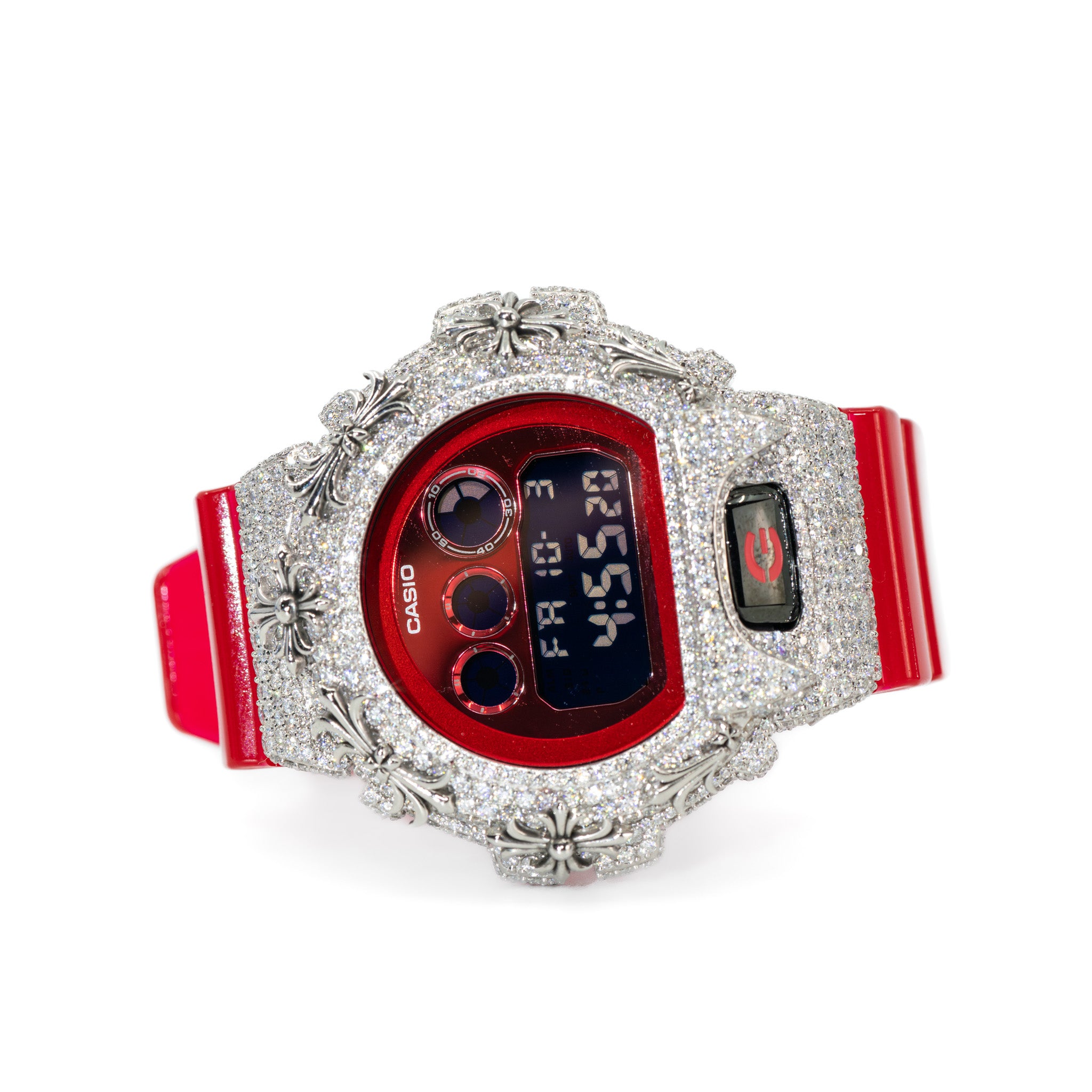 Take your wrist game to the next level with our custom Chrome Heart G-Shock, a bold reinvention of the classic streetwear timepiece. Every inch of this watch is transformed into a luxury statement piece, iced out with VVS1 clarity lab-grown moiss that delivers unmatched brilliance, fire, and shine. Each stone is meticulously handset for a flawless finish, and with diamond tester certification, you can rock it with full confidence knowing it passes the test every time.