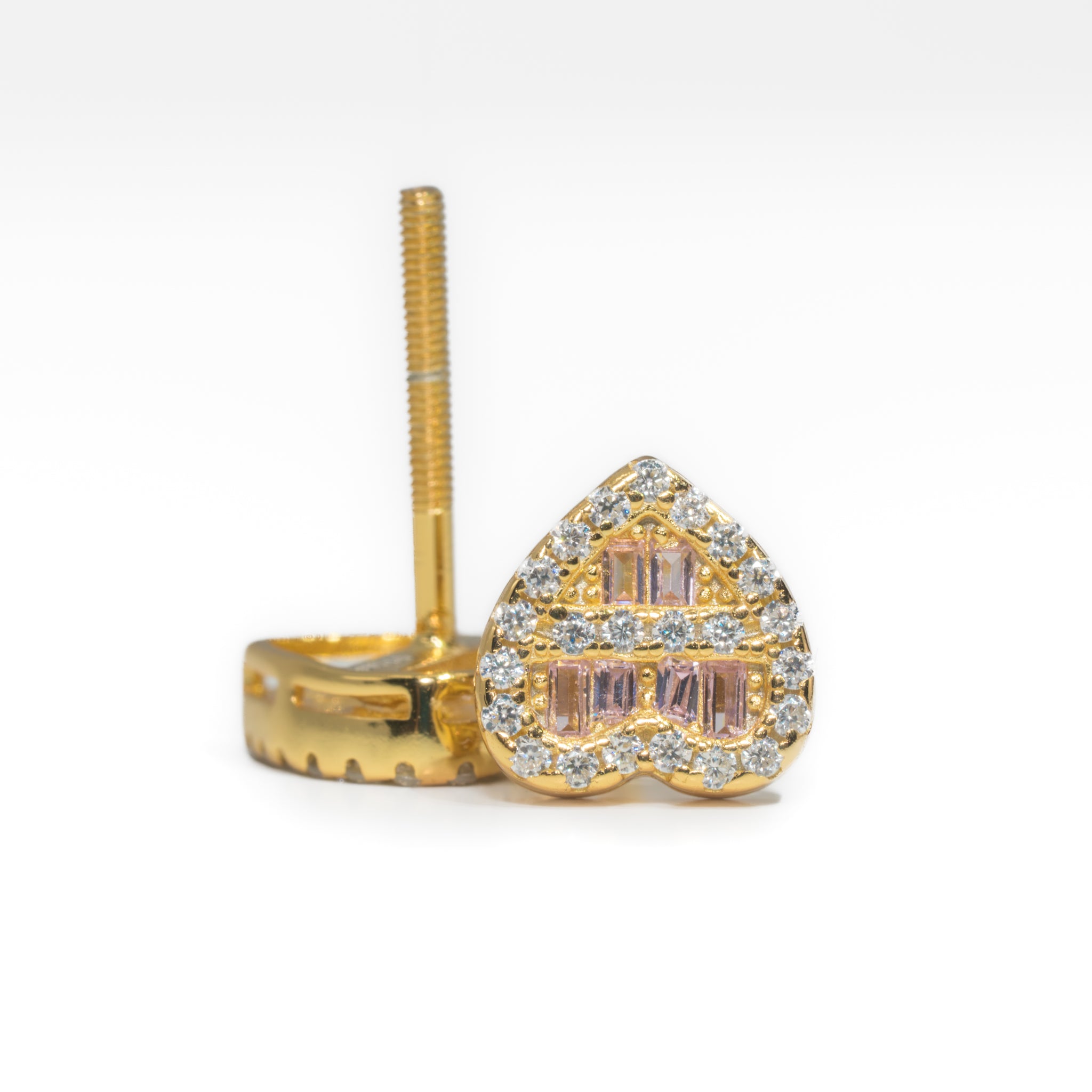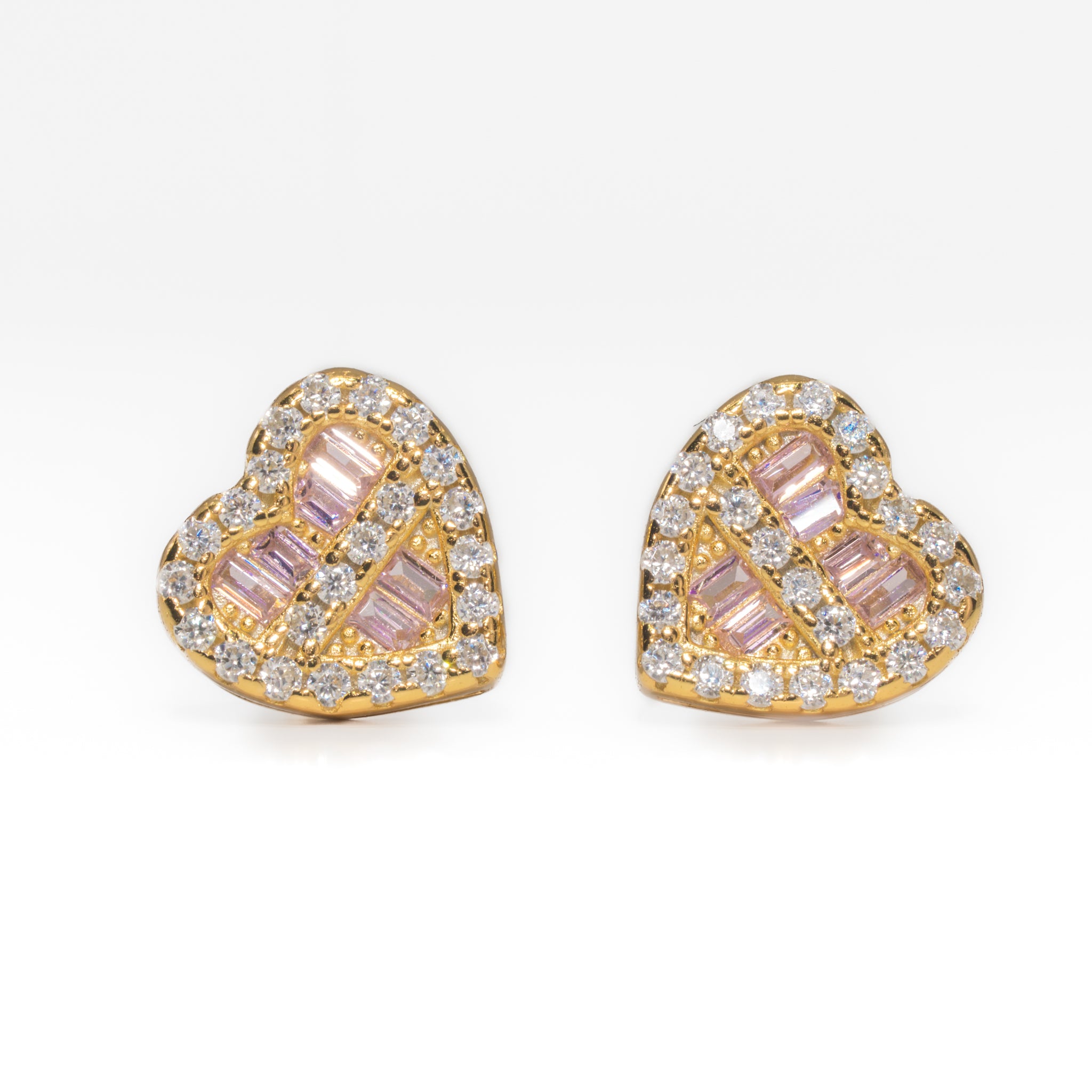 These heart earrings are available in two premium finishes. The silver option delivers a clean, versatile look with sleek shine that pairs effortlessly with any outfit. The 18k yellow gold plating brings a warm, bold glow that enhances the vibrancy of the purple baguettes and creates a striking contrast. Whether you prefer the modern shine of silver or the timeless richness of gold, both variations highlight the craftsmanship and detail of the design.