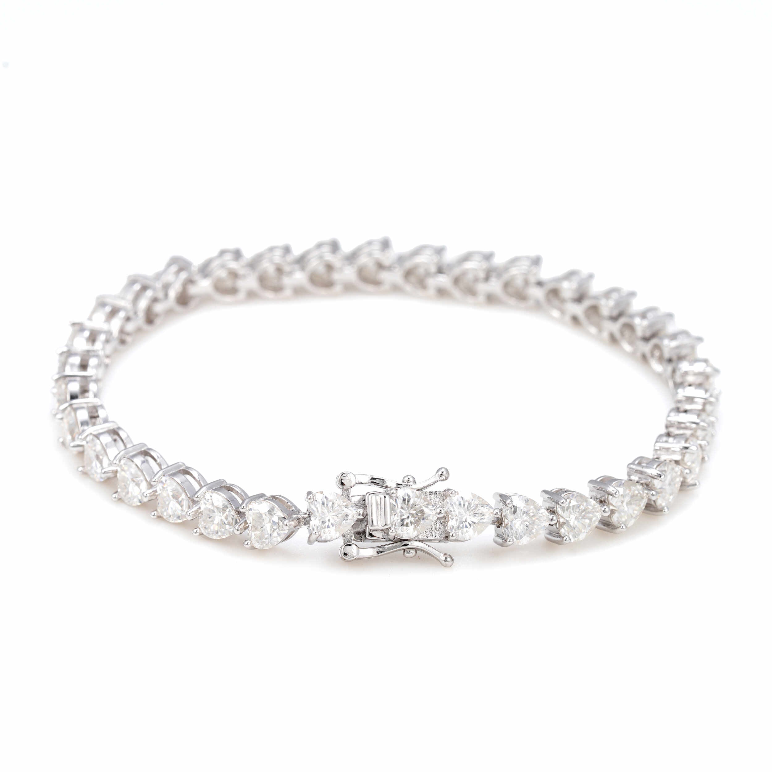 The secure, elegant clasp keeps the bracelet firmly in place, allowing you to wear it with complete confidence and ease. Every detail is thoughtfully considered—from the precision setting of each moissanite heart to the refined links that give the bracelet its flowing, delicate movement.