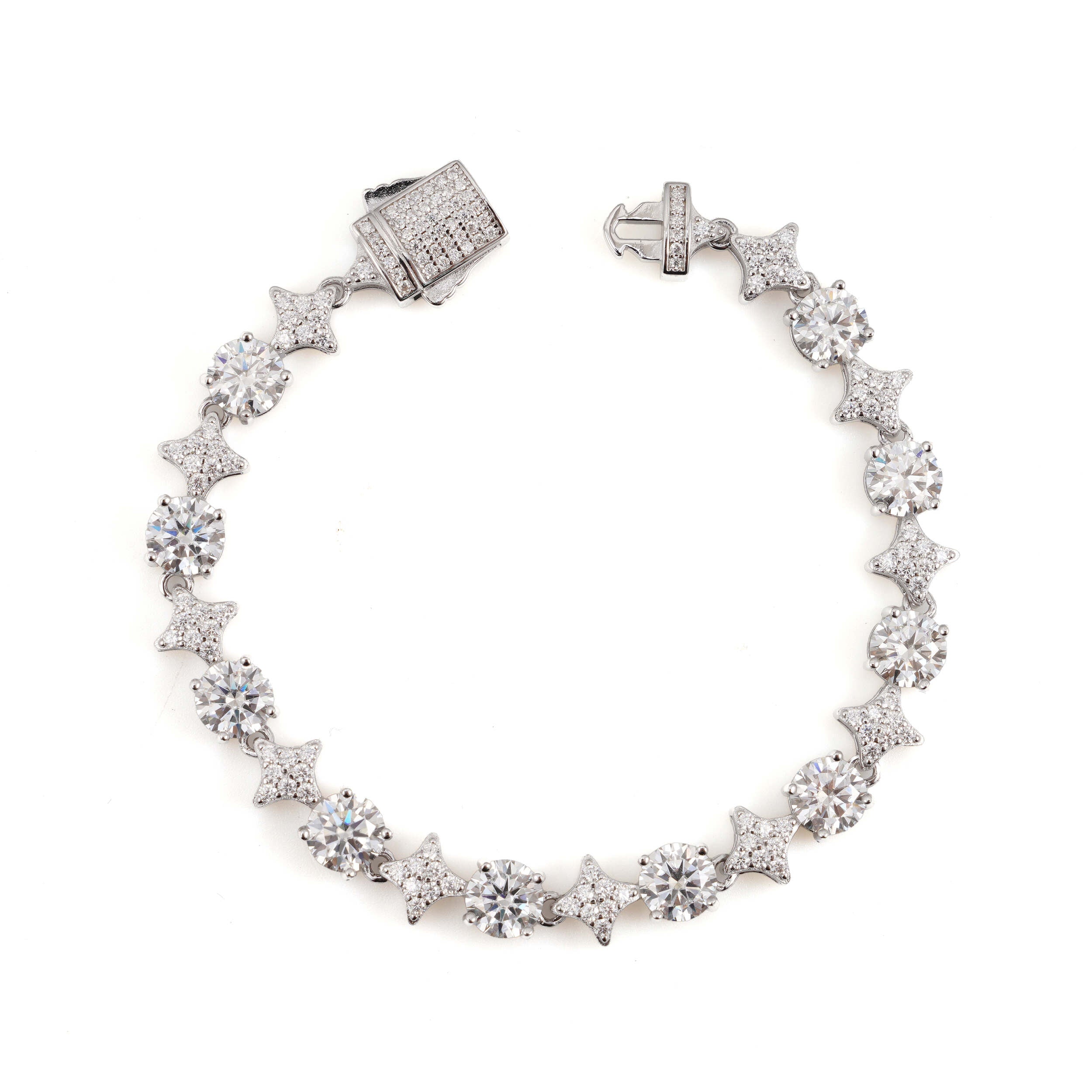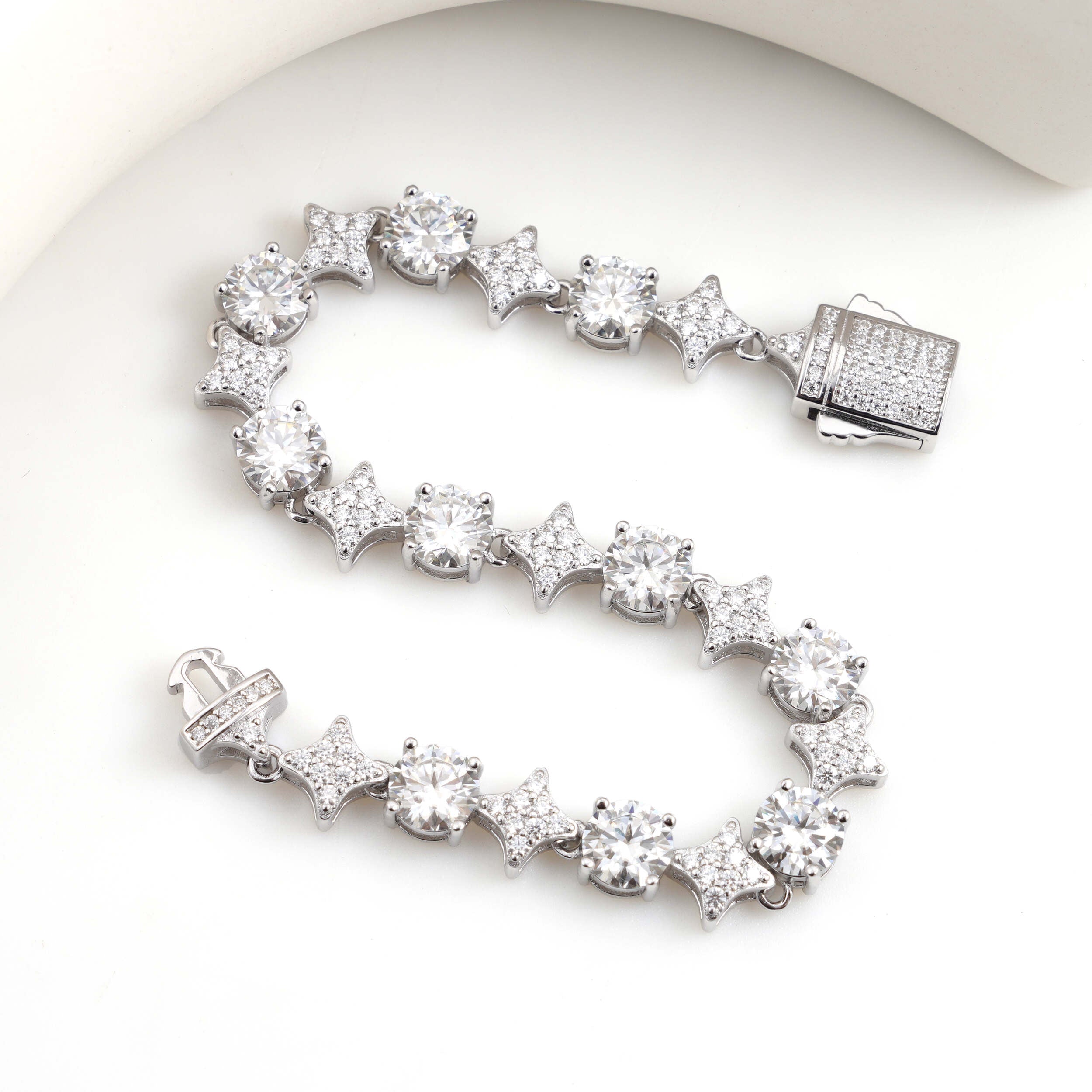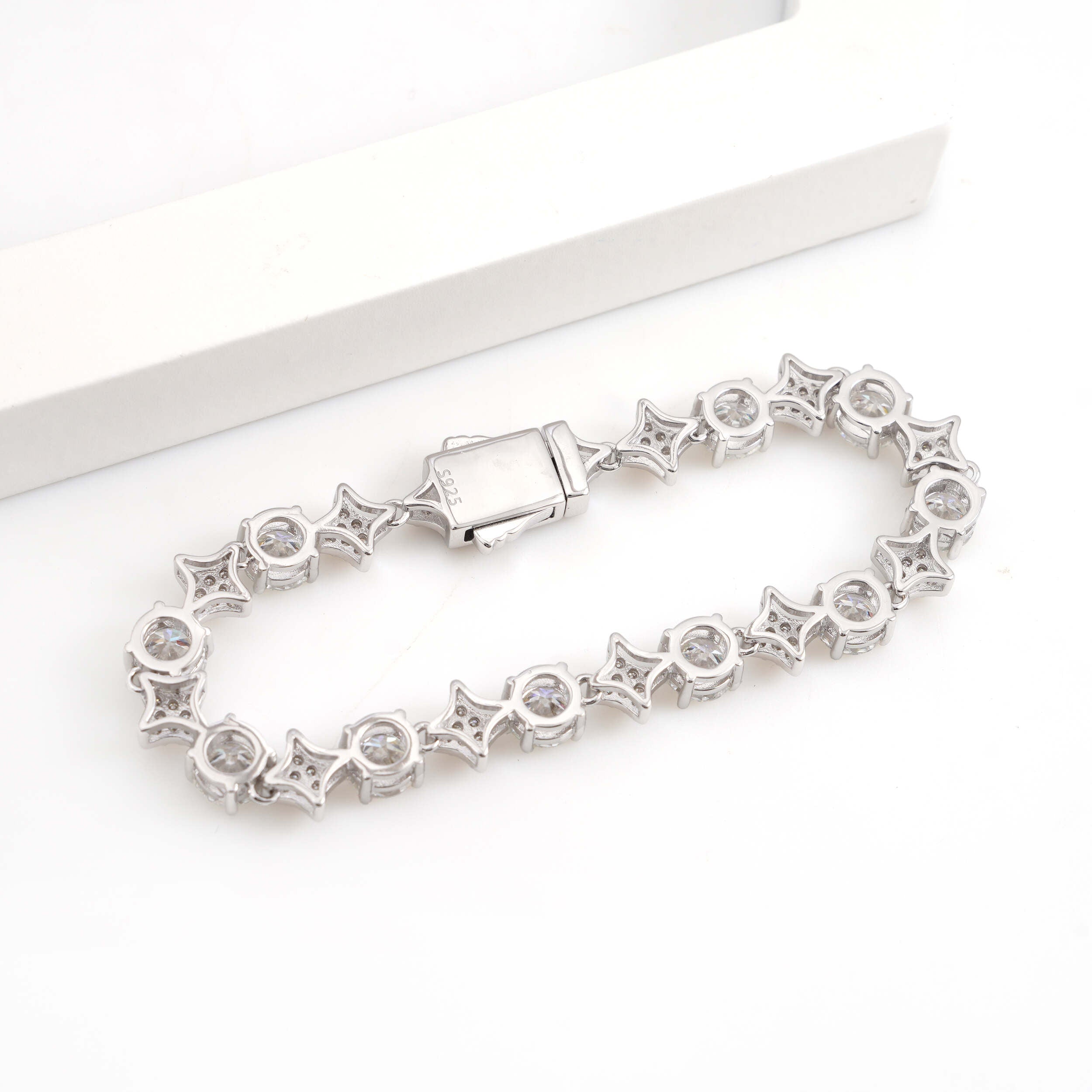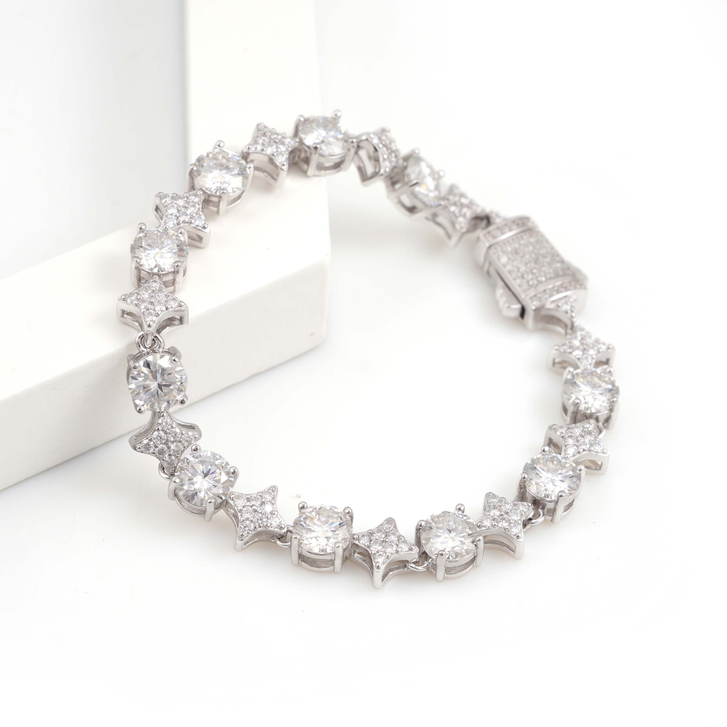 Crafted for the bold and built to turn heads, the Icy Geometry bracelet is a statement in structured elegance. Handcrafted from solid 925 silver, this piece features a striking pattern of angular shapes—each one iced out with VVS1 lab-created Moissanite stones that rival natural diamonds in brilliance and clarity. Designed to pass the diamond tester, every facet hits with sharp shine and confident precision.