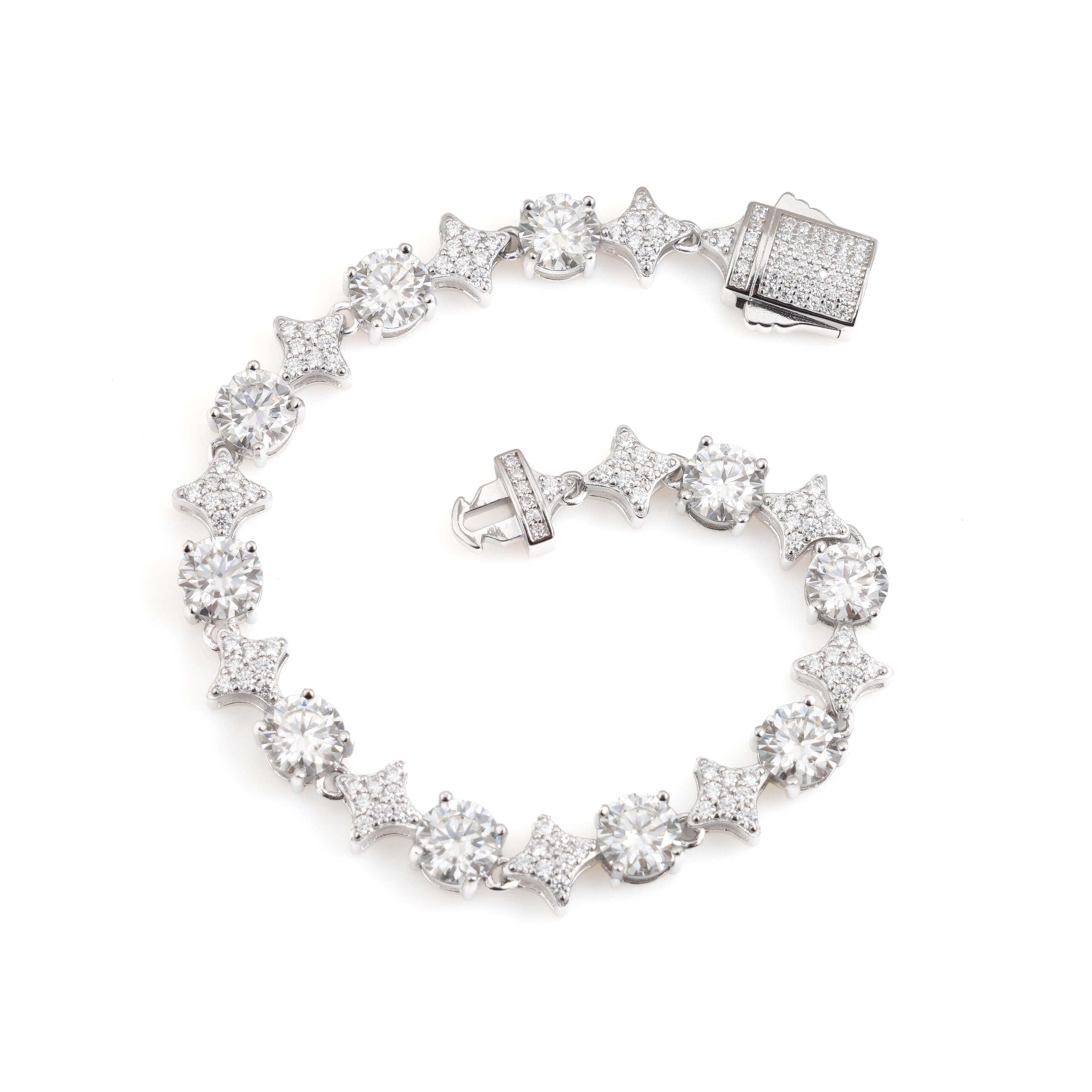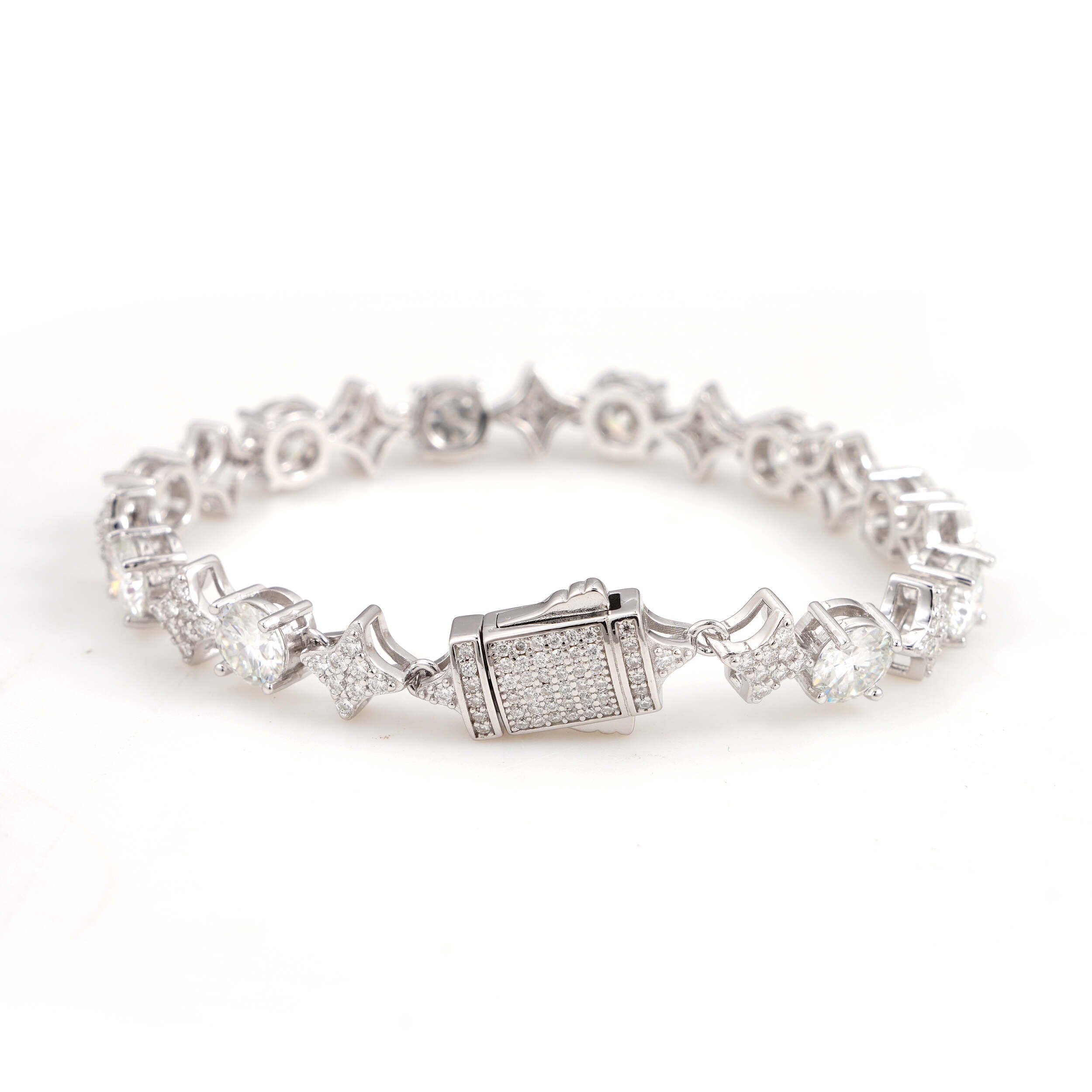 This bracelet doesn't just elevate your drip—it defines it. With a clean geometric flow and a secure box clasp flooded in pavé stones, Icy Geometry balances luxury with a sharp, modern aesthetic.